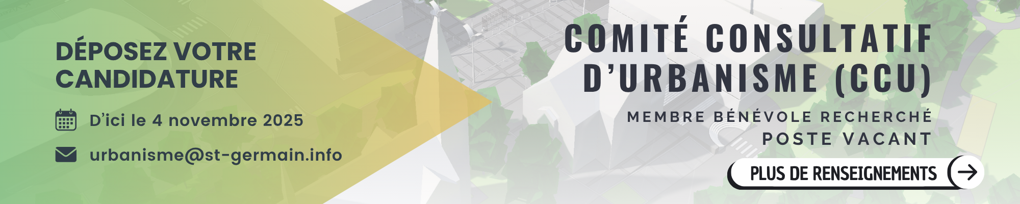- Comité consultatif d’urbanisme (CCU) : Poste vacant 15 octobre 2025