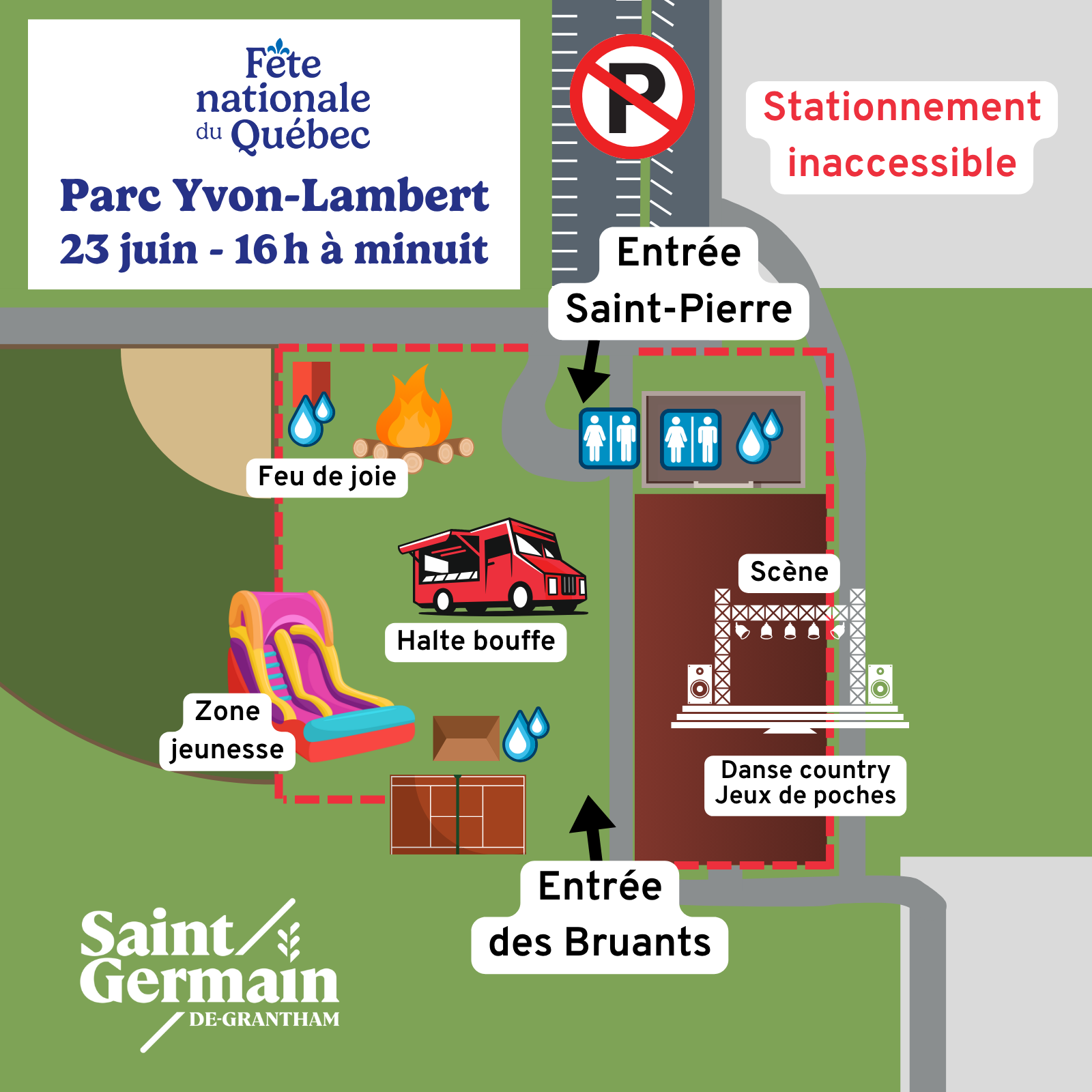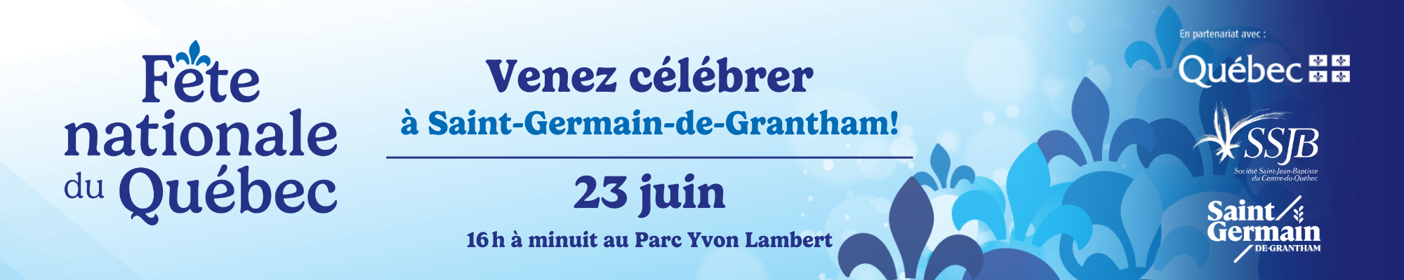 Nous avons très hâte de célébrer avec vous la fête nationale du Québec, le 23 juin prochain à Saint-Germain-de-Grantham. Un moment pour se retrouver en famille, entre amis et voisins, pour partager des moments de joie et de fierté.