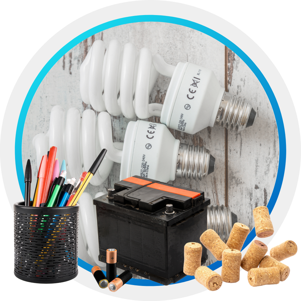 Débarrassez-vous de manière responsable de vos batteries, piles, cartouches d’encre, bouchons de liège, stylos et ampoules fluocompactes.